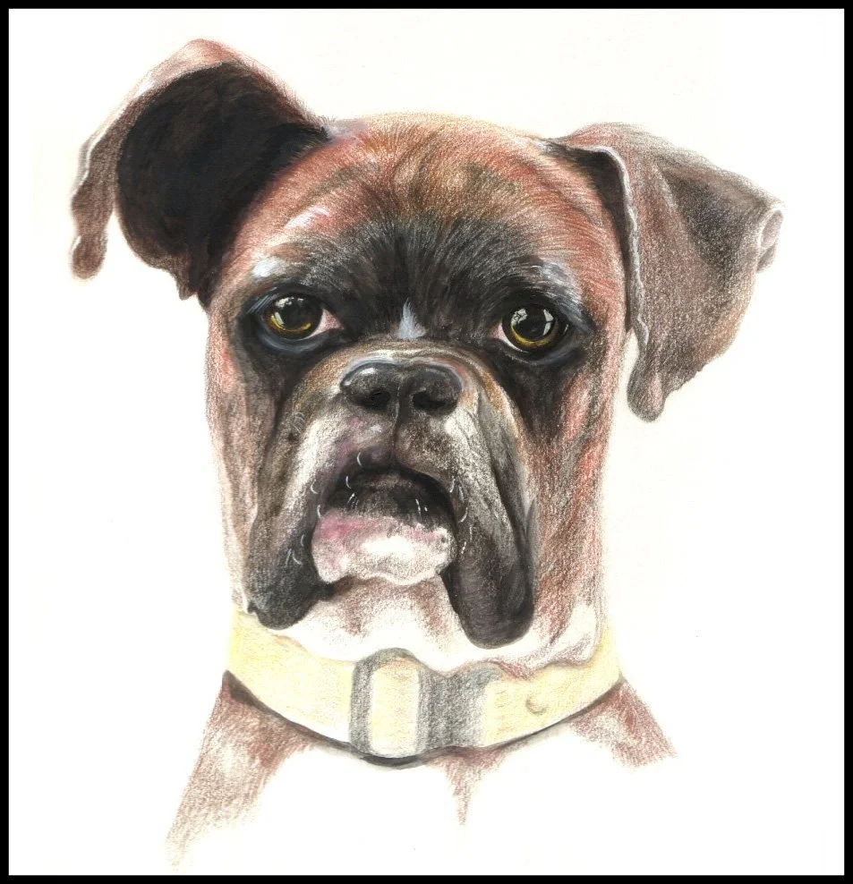This was my first ever coloured pencil pet portrait. It was created some time around the turn of the century!